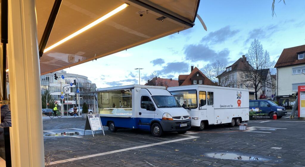 Ich bin von 7.00 Uhr bis 12.00 Uhr mit meinem Fischwagen vor Ort.