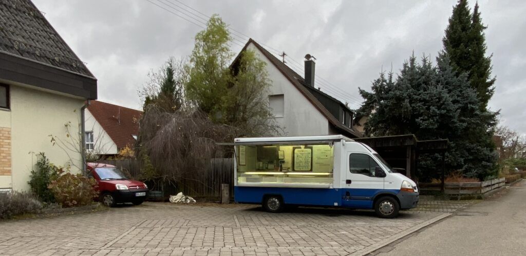 Ich stehe von 14.00 bis 18.00 Uhr mit meinem Fischwagen auf dem Parkplatz.
